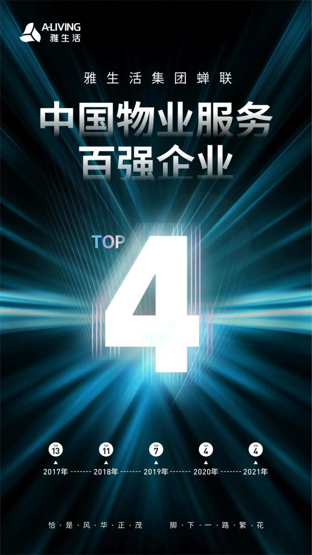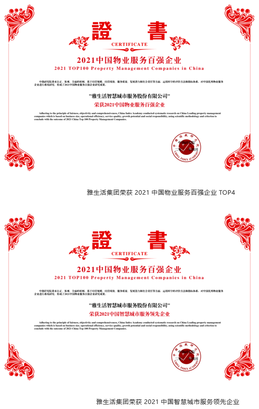 雅生活蟬聯(lián)中國(guó)物業(yè)服務(wù)百?gòu)?qiáng)企業(yè)TOP4,持續(xù)鞏固行業(yè)龍頭地位