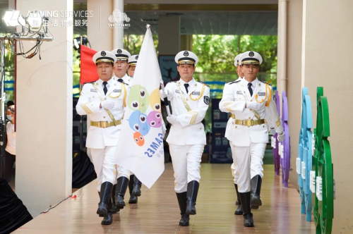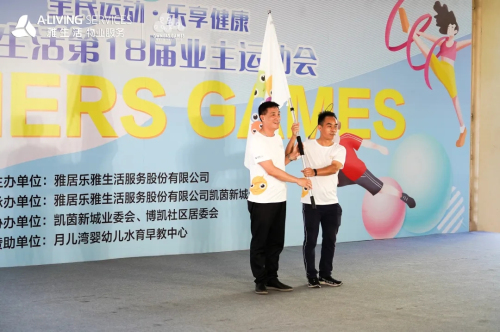 在運(yùn)動員與裁判員代表分別宣誓后,雅生活華南區(qū)域中山片區(qū)總經(jīng)理鐘錦繡作為物業(yè)代表為運(yùn)動員授旗。