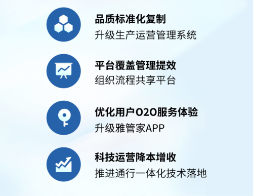未來,雅生活集團將著力打造五大核心競爭力,分別為服務產品力、市場拓展力、科技運營力、整合組局力以及高效組織力。集團將始終堅持品質核心,持續提升服務標準化,不斷創新、迭代服務產品,打磨服務產品及口碑,梳理不同業態服務產品標桿。